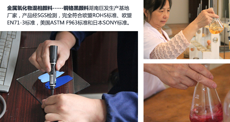好博在线注册是国内专业的金属氧化物混相颜料-----铜铬黑颜料生产基地厂家,产品经SGS检测,完全符合欧盟ROHS标准、欧盟EN71-3标准,美国ASTM F963标准和日本SONY标准。
